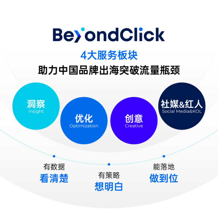 随着越来越多的中国企业出海,飞书深诺不断拓展营销与技术能力,深化服务的广度与深度,满足更多元的商业和营销需求。今年也推出全新升级的始于数据终于效果的出海数字营销服务子品牌BeyondClick,提供集洞察、优化、创意、社媒红人服务为一体的整合式营销解决方案,用更精准的洞察、更优质的内容、更高效的转化更好地促成交易。